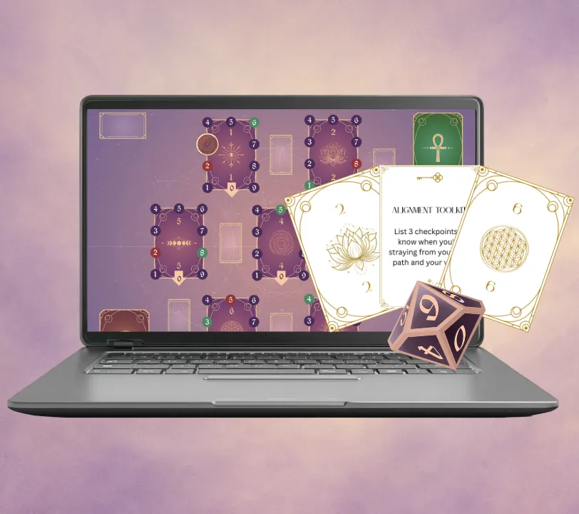 The Resonant Path™ is an online journey-based, introspective board & dice game that guides established consultants through key realms of their business and personal alignment using archetypal challenges, reflection prompts, and intuitive dice rolls.